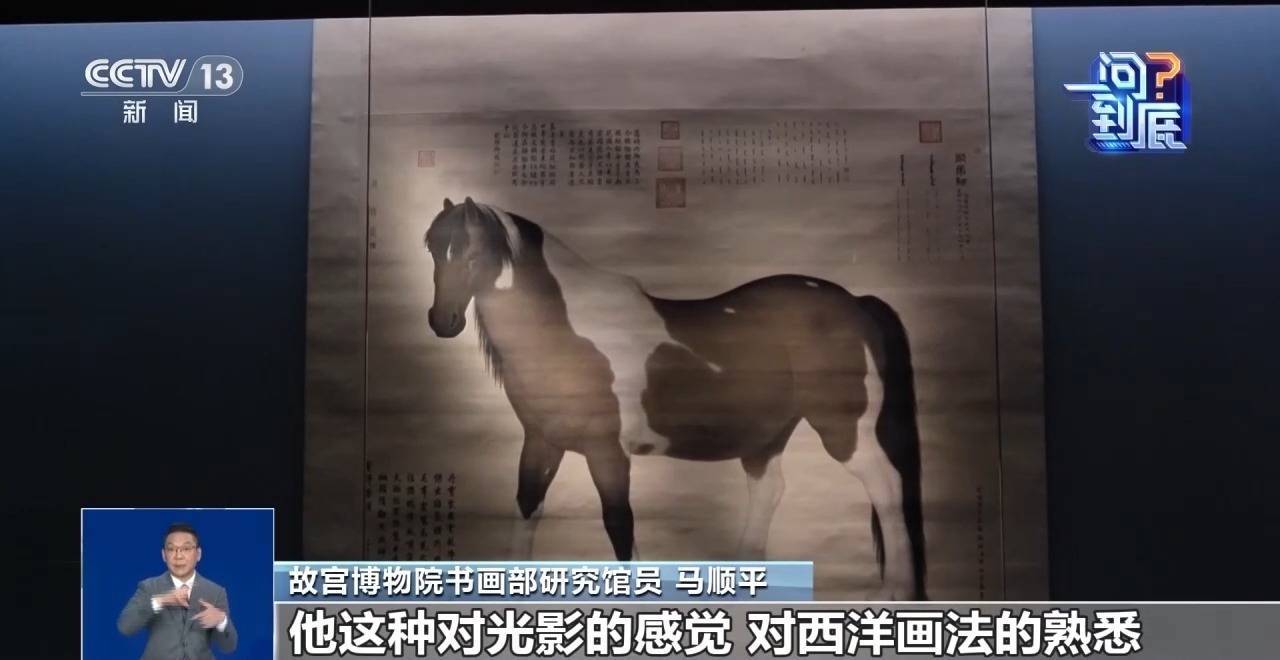 故宫博物院书画部研究馆员 马顺平:郎世宁在欧洲受过严格训练,他对光影的感觉、对西洋画法的熟悉,他把这种风格带到清宫里面来了。所以这幅画包括这个马的层次、马的结构、造型,皮毛的渲染,都非常符合马本身的状况。