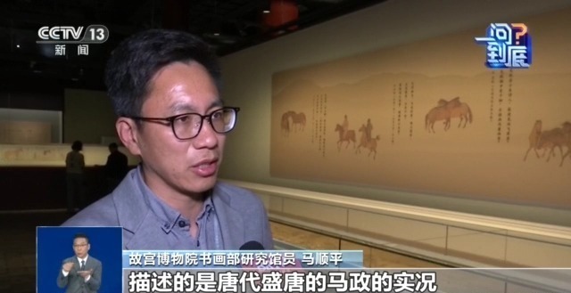 故宫博物院书画部研究馆员 马顺平:这个画的场景,描述的是唐代盛唐马政的实况,但艺术表现却是李公麟自己的,唐代的线条是非常充满力量的,李公麟的马是骨肉停匀,柔中带刚,他的线条是非常优美的,展现盛唐画马政,展现北宋最高画马的水平,这是一个古代画马的巅峰之作。